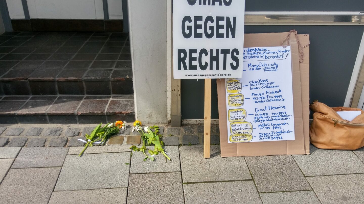 Ein weitere Aktion am Sonnabend, den 8. Mai, war die Reinigung einiger der 21 Stolpersteine für Männer, Frauen und Kinder, die in Bergedorf gelebt und von den Nazis 1941 und später ermordet wurden.